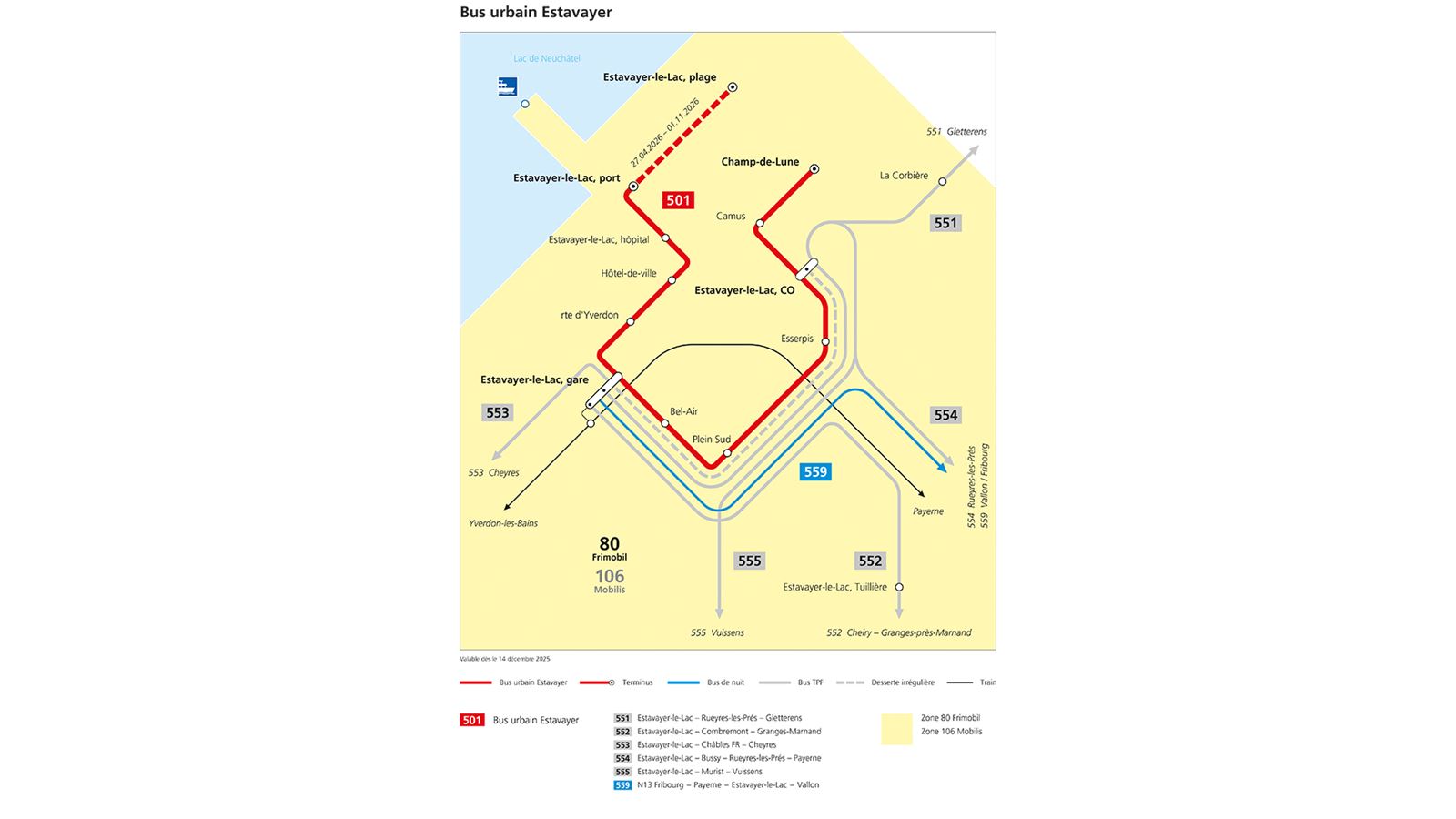 • Die Linie verkehrt bis «Estavayer-le-Lac, port»