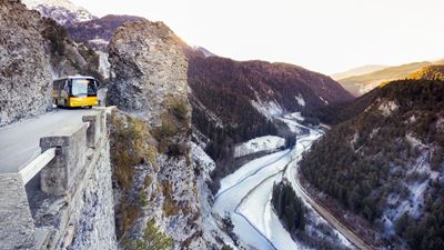 The yellow Postbuses that run along narrow mountain roads and in densely populated conurbations are a hallmark of Switzerland. PostBus uses vehicles to suit the topography and passenger frequencies. This protects the environment and makes economic sense.